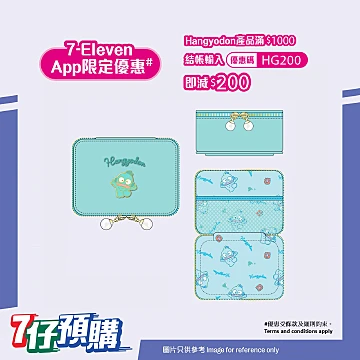 推廣期內*購買任何Hangyodon產品滿$1,000於付款前輸入優惠碼「HG200」並於7-Eleven 應用程式完成下單,即可享$200折扣優惠。優惠受條款及細則約束,詳情請參閱7-Eleven 應用程式。